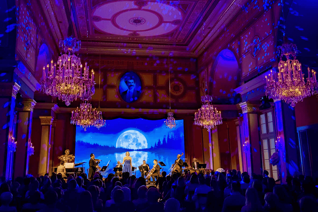 Una experiencia musical inolvidable con los momentos más famosos de los grandes maestros de la música clásica. Un concierto lleno de glamour, elegancia y emoción. Vive nuestro concierto cinematográfico único: música, canto, luz y multimedia se funden en una experiencia completa en todo el escenario de la sala de conciertos original de 1837″. Un acontecimiento musical que hará que tu visita y tu viaje sean inolvidables.